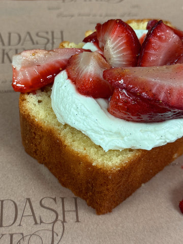 Our latest specialty loaf is here! Introducing our Pound Cake loaf, topped with our vanilla cream and fresh strawberries.