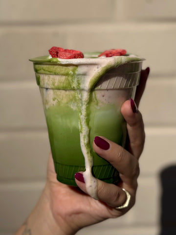 Indulge in something sweet this February by topping your drink of choice with our house-made strawberry cold foam! Ash loves to add it to our Strawberry Matcha or Iced Chocolate.