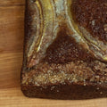 A sweet, moist bread loaf with sliced banana and sugar topping.